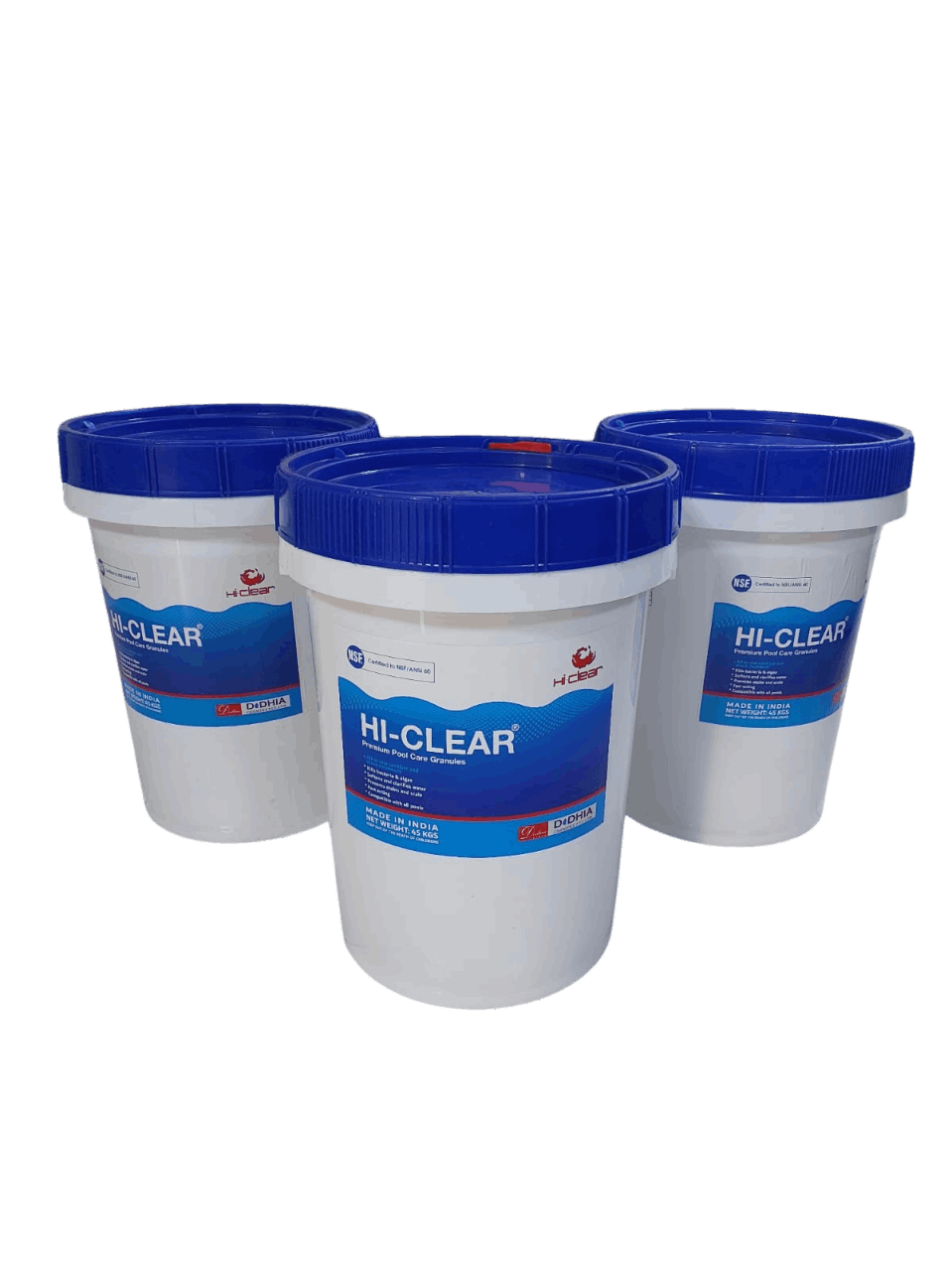 Hi-Clear™, manufactured in INDIA by Dodhia Chemtex Pvt Ltd is a premium quality All-in-one sanitizer and shock treatment for your swimming pool which kills bacteria and algae, softens, clarifies and prevents stain and scale, visibly sparkling blue water in 24 hours.